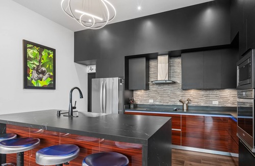 All bathrooms in the villa are adorned with fine black ceramic finishes and feature luxurious rain showers. The lush landscaping, Costa Rican-inspired art, and open-concept spaces, coupled with floor-to-ceiling windows, create a serene and unforgettable ambiance, perfect for relaxation and disconnection from everyday life.