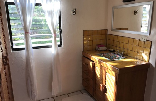 Enjoy coffee by the pool, fresh squeezed orange juice, and breakfast that Rosa will prepare for you in the dining room or on the patio (upon request). You'll have a breathtaking view either way. There are stairs to the roof from the upstairs patio for those of you that like all day sunning or star gazing! The lower level has a large entrance foyer, two bedrooms and one bath. The house is decorated with bright island colors with authentic Mexican art!