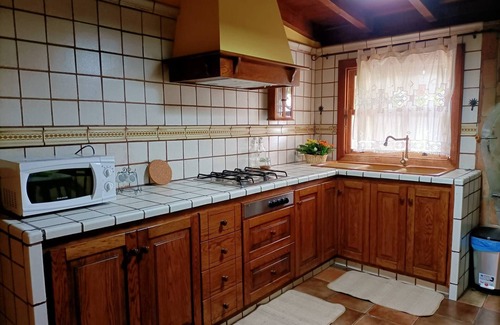 The rustic-style kitchen comes equipped with everything you need to prepare delicious meals, and features a wood-burning oven, adding a traditional touch to your culinary experience. You will also find a cozy reading and work room, ideal for relaxing or focusing on your projects. For entertainment, the house offers a comfortable TV room and a large terrace with spectacular mountain views, the ideal place to enjoy the peace of the natural environment.