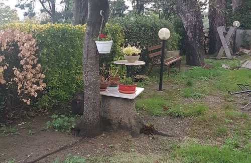 The house is as follows: large entrance hall, large living room with TV and fireplace, spacious kitchen with fully equipped TV, two bedrooms with double bed and single bed, bathroom with shower and window, large private garden with gazebo, with table and chairs where it is possible to have lunch or dinner outdoors, and where you can relax in the shade of the trees or sunbathe, a back-yard space with a sink, an outdoor room with a wood-burning oven and a barbecue. Free parking on the street.