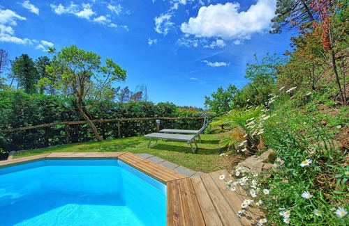 At guests' disposal: 2 bedrooms and 1 bathroom, swimming pool reserved for the exclusive use of guests (6.5 x 3.5 meters; depth: 1.40 meters), fenced garden with barbecue area, wood oven, lovely gazebo, corner with swing, parking on the property, elevated and panoramic position of the house, baby bed, wi-fi internet connection (free wi-fi).