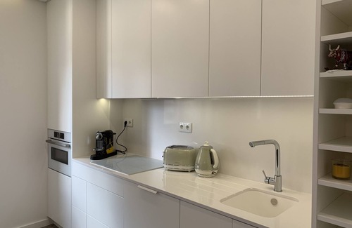 The living room has a sofa bed for two extra guests, TV with international channels and WI-FI that can be extended to the entire apartment. It also includes a dining area with a table for six people and a fully equipped kitchenette with everything you need to prepare your homemade meals. It has a hob and oven, microwave, dishwasher, washer and dryer, electric kettle, coffee machine, toaster and mixer. Ironing board and iron are also available.