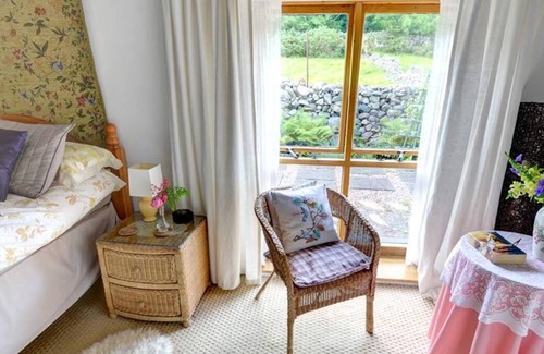 Four miles from the town of Caernarfon on the owners' courtyard on a narrow private lane is the sixteenth century barn on one level known as Cefn Bwlch Bach. This area of outstanding natural beauty has wonderful views of the mountains and is four miles from Llanberis, with local shops and a pub only a five minute walk away. Other attractions include slate museums, excellent beaches, mountain railways and garden nurseries.