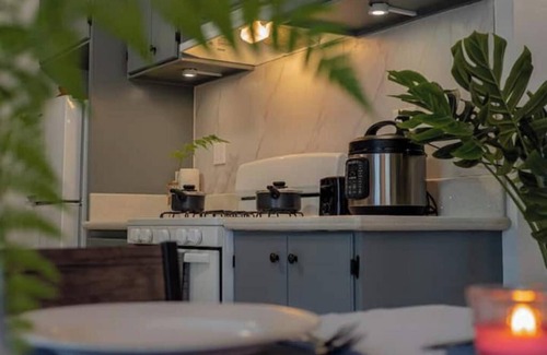 Meda House is ideal for a group of 4-6 people! Downstairs, there is a kitchen including stovetop, refrigerator, dishes and appliances. There is also a dining table for 6 people, a coffee table area, 1 full bathroom with shower and toilet and 1 bedroom with a double-sized bed for 2 people.