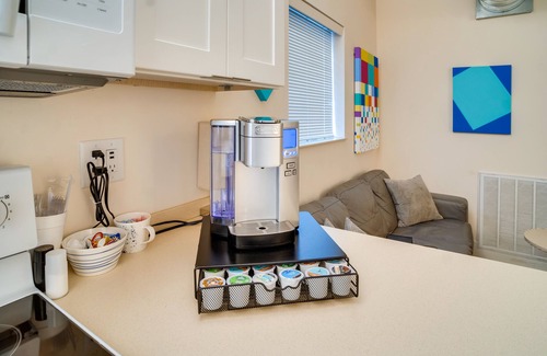 KITCHEN: Dishwasher, Keurig coffee maker (coffee provided), blender, toaster, fridge, stove & oven, microwave, dishware/flatware, trash bags/paper towels, cooking basics, complimentary coffee, tea & snacks
