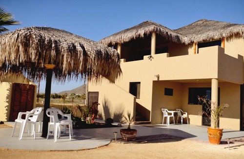 Step out onto your private beach or balcony and see the waves roll in on the miles of golden sandy beach just steps away. This beautiful solar-powered beachfront, 2 bedroom (3 bed) upper level (1600 sq ft ) suite on Cerritos Beach is ideal for surfing, yoga, swimming and complete serenity. Gated & secure, featuring 2 king-size beds, a pull-out sofa, & full kitchen. It is a perfect haven for the adventurer at heart or those just looking to relax and get away from it all. For inquires about other rentals on the property, visit cerritosbeachpalace
