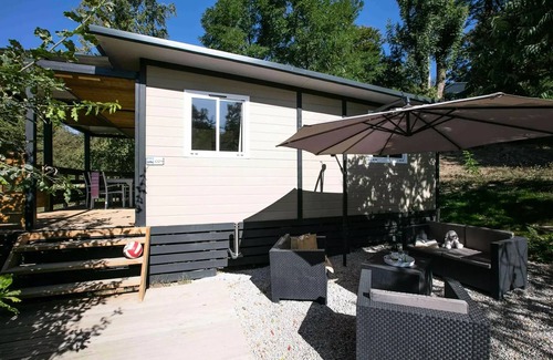 Accommodation: Comfortable chalet, 3 bedrooms, for 6 people, year 2019. Large covered terrace with view of the pond and outdoor living room in the shape of a patio. Large screen satellite TV, master bedroom with TV also and double bed 160x200. Large sanitary, separate toilet, bathroom with double sink and large shower.