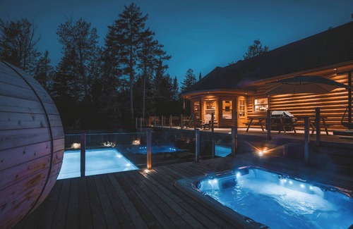 Chalet Blue Jay is a stunning log cabin located in the prestigious Fiddler Lake Resort, just outside of Morin Heights in the Saint-Sauveur Valley. The chalet sits on a large, private wooded lot spanning over 85,000 square feet. Sheltered from neighbours and prying eyes, you can be assured of tranquility and privacy to fully enjoy your vacation!
