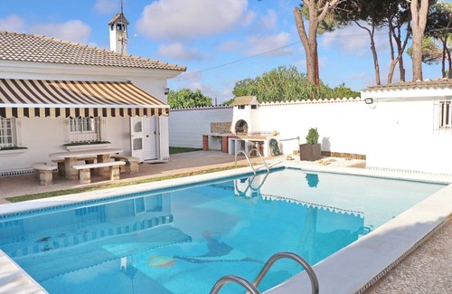 Villa in Chiclana with private pool, garden, porch with furniture and barbecue, with capacity for 8 people.