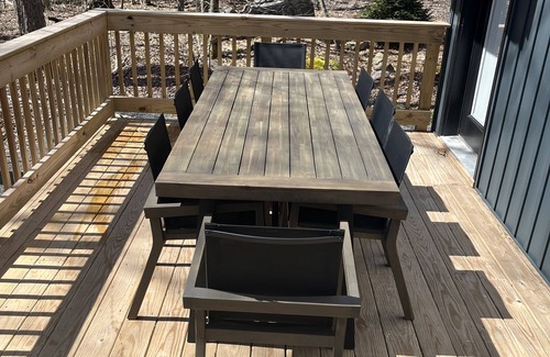 Come relax in our Chalet in the Pines. This new construction 4 bedroom and 2 bath Chalet has all the modern amenities you could need to have a relaxing stay. Come relax on the rap around deck and watch nature go by, or sit by the fire pit at night and roast marshmallows. Nestled in the heart of Lake Naomi, this prime location is in walking distance to north beach, deer trail lake and the community center. Minimum age to rent is 25 years of age. Township Registration # 020698
