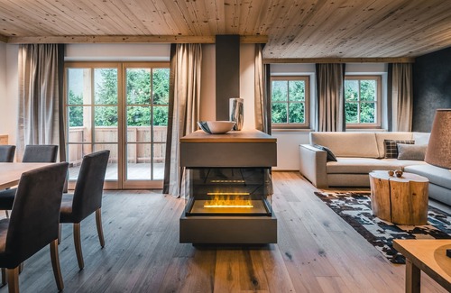 The 130 square meter Chalet Regina has three cozy bedrooms, each with its own bathroom. The large living and dining area with ambient fireplace invites you to linger not only after eating.