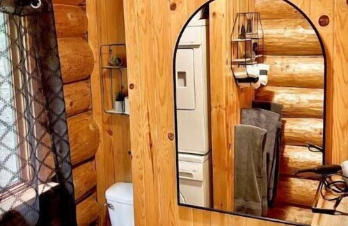 This cozy log cabin sits on top of a hill and overlooks the SGDV valley. Equipped with two bedrooms on the ground floor and full bathroom with washer and dryer on site, as well as a wood fireplace (wood included) and fully equipped kitchen and bathroom. Everything you need is to bring your own food.