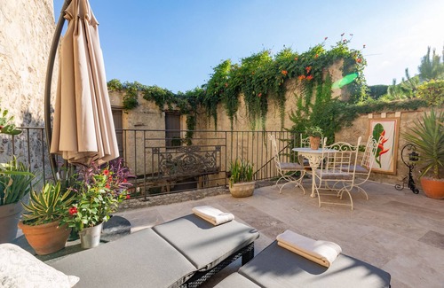 Champagne House is a Champagne themed townhouse in the centre of Condom. The property has 3 suites and a large bedroom with en-suite and 5 bathrooms in total, all are well appointed with quality bed linen, towels and robes. There are lots of places to relax with two outdoor terraces, summer kitchen and a small pool. There is a welcome pack including a bottle of Champagne on your arrival.
