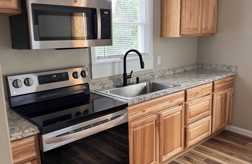 Plentywood is waiting for you at this 1-bedroom house. Enjoy the comfort of a queen bed and unwind in the living room with a cozy sofa bed. This phenomenal property offers a washing machine and dryer, heating, AC, and WiFi for your convenience. The bathroom comes equipped with a hair dryer, ensuring you have everything you need for a relaxing stay. We look forward to welcoming you to our place.