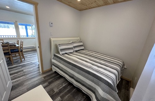 This charming 2-bedroom cottage has been fully renovated giving it that classic cottage feels but with fresh modern finishings. Bright and cheerful this cottage sits just steps from the water and features a fabulous walk out to a covered deck where you can enjoy BBQs, Coffees, a game of cards or just some quite time and picturesque lake views. Have the use of a large lawn area to play sports, a private campfire under the stars or a swim right off the dock. The perfect vacation getaway for a couple, a family with small children or just some snowmobile buddies.