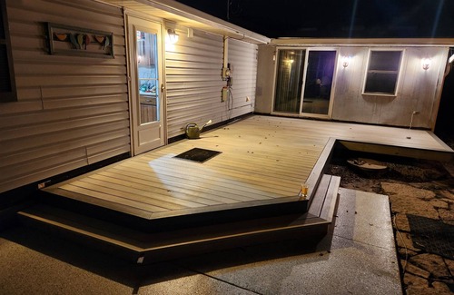 This home is approximately one hour from Green Bay. Just fifteen minutes from EAA in Oshkosh , ten minutes away from Fond du Lac . Green Lake is about 30 minutes and Ripon is 20 minutes Stay comfortably in Eldorado at this 2-bedroom house with a large country lot, featuring spacious new deck with gas grill, fire pit, flower beds and garden. There is a Gazebo, and three seasons room open in warmer weather. The bedrooms feature a pleasant king bed and a lovely queen bed. Enjoy the tranquil living room with an additional queen sofa sleeper. This property also includes a bathroom with a hair dryer and high rise toilet and skylight. Book now and enjoy everything this house has to offer.