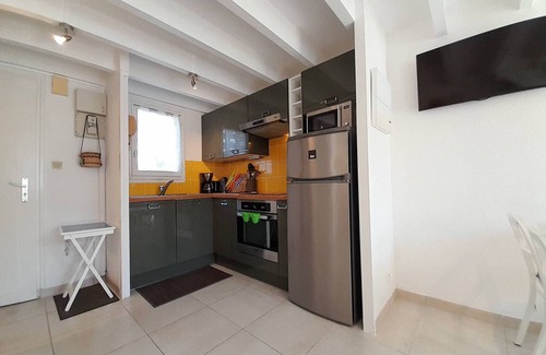800m from the Kervillen beach and 1 km from the port of La Trinité-sur-Mer, very pretty terraced 3-room house (approx. 40m²) for 4 people, with enclosed terrace :