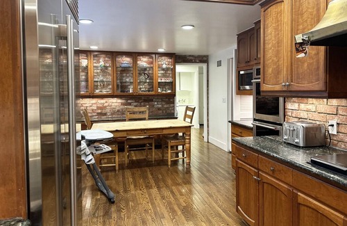 The fully-equipped Kitchen is a chef's dream, featuring a table for six, a high-end Sub-Zero refrigerator, a separate ice maker, dishwasher, double oven, stove, and toaster. It comes stocked with essentials like spices, flour, sugar, condiments, plus all the cookware, glassware, and dinnerware you’ll need.