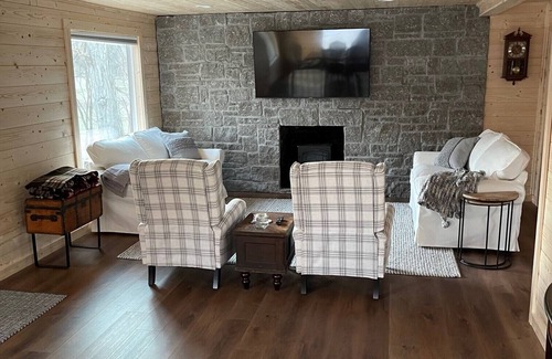 The cozy main living area has a Samsung Smart TV with access to your favorite streaming apps. There is no cable or satellite TV at this location.