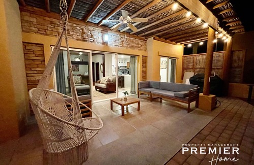 The house is within Las Colinas gated community with 24hr security. Ample house with a large back patio with incredible views of the ocean, enjoy a BBQ evening with your family. The layout is 3 bedrooms with two king size beds and two twin size beds. Fully equipped kitchen, comfortable living room for movie nights or if you feel the need to unwind take a long bath in the master bedroom jetted tub.