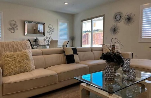 Indulge in a chic stay at our immaculate 4BR/3BA home in Riverside County. Nestled in a secure, tranquil neighborhood, this fully equipped residence offers a cozy ambiance. Strategically positioned, it's just a short drive from casinos, Temecula wineries, lakes, shopping outlets and scenic canyon roads. Conveniently near the 215 Freeway and public transportation, our property is ideal for business trips, family getaways, and tourists alike. Your perfect home base awaits!
