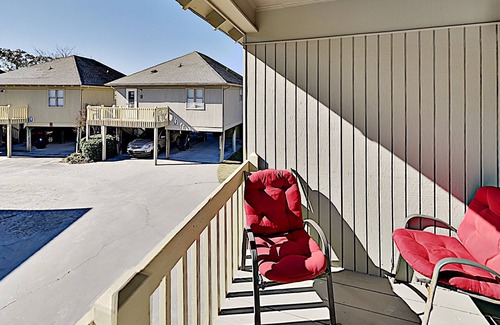 This 2-bedroom, 2-bathroom Guest Cottage is an ideal choice for small groups or families, accommodating up to 4 guests. The cozy home features a full kitchen with modern appliances, including a coffee maker, blender, and dishwasher. For added convenience, there is an in-unit washer and dryer. The cottage is elevated with parking underneath for easy access, and the pool is right beside your unit, allowing you to unwind while watching the kids swim. Please note that while the layout is similar, the decor may vary as each unit is individually styled.