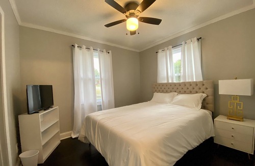 You will be centrally located to everything KC has to offer in this charming bungalow with off street parking! Located on a quiet street in a quaint neighborhood, this space is still close to KC’s top attractions! Union Station, Legoland and Crown Center, the WWI museum, The Plaza, Power and light, Westport, The KC Streetcar, and many of our top Barbecue restaurants are less than 10 minutes away. Arrowhead and Kauffman are just 15 minutes away.