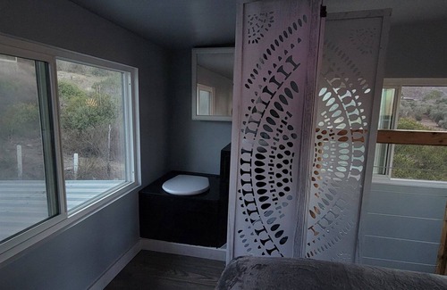 This custom-built casita with loft is creatively designed by the owner. Made up primarily of reclaimed wood and windows, the views are unending from every turn. Drinking water is plumbed throughout the house. Please bring your own refillable water bottles and/or travel mugs.