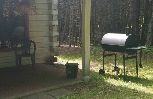 Cedar log home approx. 1240 sq. ft., 3 bedrooms, 2 queen size beds, 2 single beds, full bath upstairs, 1 sofa sleeper, newly remodeled full bath with walk in shower downstairs. High chair, pack-n-play, deck, dishwasher, microwave, stove, refrigerator, coffee maker with k-cup, washer and dryer, sound system, grill, Directv , Roku and internet. Double fireplace. Spiral staircase, lower level air conditioning. Short walk to Rowley's Bay and DNR marina for boat launching and fishing. Short drive to a beautiful County Park and beach. Kayak Rowley's Bay and up the picturesque Mink River. Kayak rentals, segway and zipline within walking distance. Perfect night sky for stargazing. No cleaning fees.