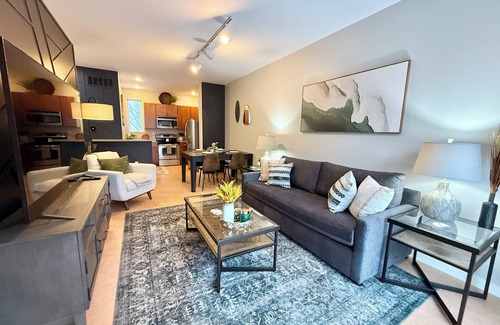 -Cozy contemporary living room with brand new, super comfy sofa bed. 75 inch high definition smart tv.