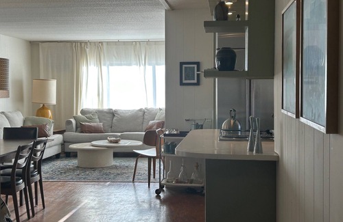 Kick back in our peaceful, comfortable home where simple but well-styled interiors contrast with the property's 5 cactus-laden acres. A graded dirt road leads to our place, which is immediately adjacent to the western end of Joshua Tree National Park. Enjoy 360-degree mountain views from covered patios and a star-gazing deck. Perfect for remote work, creative escape, or snowbirds. We're halfway between Palm Springs and the national park. A 10-minute drive to restaurants, shops, and bars. Willing to lease for various lengths of time--discounts for longer stays!