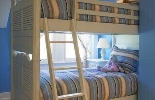 The second story is comprised of a large king bedroom with separate sitting area and walk in closet, a queen guest room, kids bunk room and a beautiful white tiled bath that looks out over the estate. The home sleeps up to six in beds with a maximum occupancy of nine.