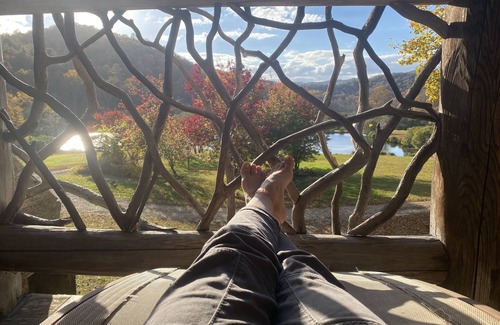 Overall, the experience was just what we were looking for... amazing. We were able to enjoy an incredible amount of relaxation around the cozy cabin, active/cool/soothing stream, quiet forest, long/well-groomed strolling paths, and lush orchards/fields. The fish ponds, horses and deer were great bonuses and enhanced the ambiance. The Canadian geese also visited the fields during our stay