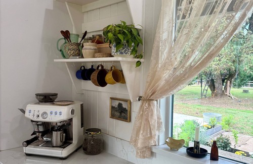 A large oversized island is perfect for preparing meals and baked goods. Toaster, air fryer, blender, waffle maker, tea pot and more are provided. A dish drying rack complete with all dish washing items has been used in this home for over 100 years. If this is your first time not being accommodated with a dish washer, and desire to have an upgrade service, the next door farm hand is available for daily dish washing. Outdoor, video surveillance is installed for the peace of mind for all travelers, and a large front gate may be closed for extra privacy for all who stay.