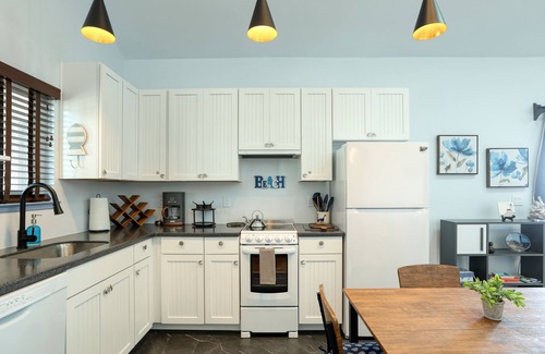 Beach gear is thoughtfully provided. Your cozy abode is fully equipped with cookware, linens, and towels. Parking is available for one car in the structure, with additional street parking options. Beach Blue is situated on the second floor, which may pose challenges for guests with limited mobility. Sorry no furry friends permitted at Beach Blue.