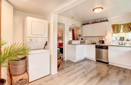 FAQ: 2 steps to enter, 2 bedrooms/2 full bathrooms on 1st floor, 2 exterior security cameras (facing out), homeowner on-site (separate home) pet fee (paid pre-trip)