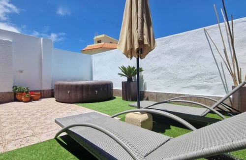 Spacious and modern apartment, with a large terrace, jacuzzi and solarium. The interior has a spacious living room, with kitchen and dining area, a bedroom with a double bed and a bathroom. Located in the town of Buenavista del Norte, Tenerife.