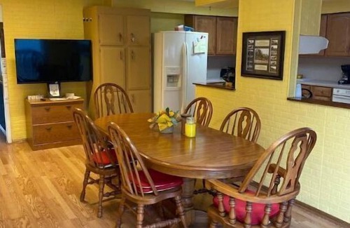 Take a break get away there's room for all to stay. The kitchen the place to be, you can watch your favorite team on TV. You can enjoy the beautiful sunset from the deck and you sit and relax. Two driveways make parking a breeze, handicap ramp and one handicap bath. New hall bath has make up area. LR has sectional and additional chairs and bay window. King and queen bed down with TV's. Up stairs 2 queen beds additional queen blow up mattress in closet. Gas grill out back.