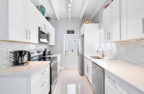 As part of the “Palm Paradise Inn – the Beach” complex, The Sandbar offers access to a sparkling shared pool and spacious backyard. Whether you prefer lounging by the pool or enjoying the sun, you’re just a short 5-minute walk from the stunning Fort Lauderdale Beach, where you can relax by the ocean, swim, or soak up the sun.