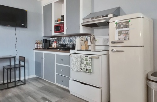 🍳 Full kitchen: stove, fridge, cookware & dishes