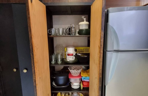 The kitchen is fully equipped with modern appliances, including a refrigerator, washing machine, microwave, toaster, and electric stove, giving you the flexibility to prepare meals at your convenience. Whether you’re cooking up a full dinner or simply enjoying a morning coffee, you’ll find everything you need right here. Fans are also available to keep the space airy and comfortable, ensuring a pleasant environment year-round.
