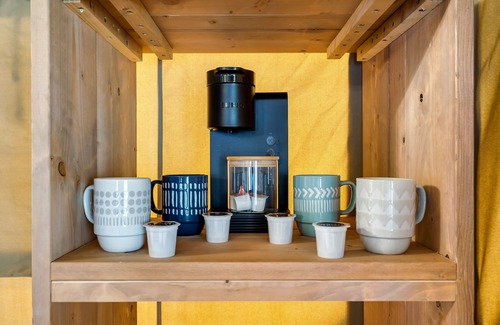 Escape to the Great Smoky Mountains at Stargazer Stays Glamping Village, where nature and luxury come together. Situated right in the heart of Wears Valley, you'll be in the middle of all the action, with Mountain Brothers Brewery across the street and The Heavenly Roast Coffee Shop next door. The spacious Galileo Luxury Tent comfortably accommodates up to 5 guests and features two private sleeping areas, including a queen-sized bed and a second area with a single bed and bunk beds. Inside, you'll enjoy a cozy living, dining, and kitchen area with a mini-split HVAC system for year-round comfort. The kitchen is fully stocked with essentials, and for your morning brew, you can use the Keurig coffee maker or your 10% credit at The Heavenly Roast Coffee Shop. Outside, relax on your private veranda with ample seating, a deluxe park grill, and access to a community fire pit and lawn games. Plus, you’ll get complimentary popcorn and a s’mores kit for cozy nights under the stars. Located just a short drive from the Smoky Mountain National Park and within walking distance of local shops and restaurants, the Galileo Luxury Tent offers the perfect mix of outdoor adventure and town convenience. Book your stay today!