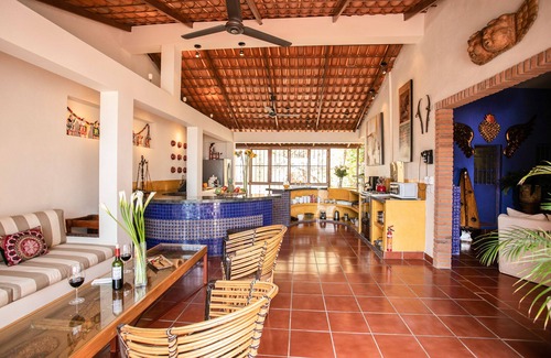Peruse the local art, antiquities, vintage collectibles & handcrafted tiles that adorn this lavish 7,500-sq ft Villa. The included 4 apartments each reflecting Old-Style Vallarta charm, allows singles, couples or smaller family units their own privacy while still being part of the larger group (up to 12). A courtyard boasting manicured gardens, rooftop terraces with saltwater pool & bar & stunning views will truly amaze. Our cleanliness and your safety have always been a top priority at Villa Colibri MX.