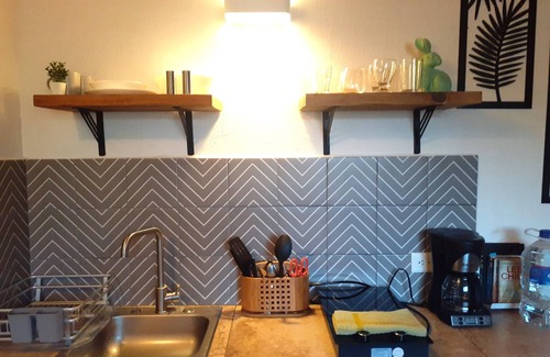 •Equipped kitchen: coffee maker, wine glasses, utensils..