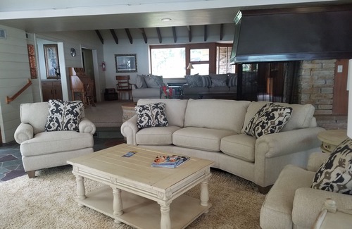Escape the demands of everyday life in this beautiful lakefront home that accommodates 6-9 guests. The home is architecturally significant built by a Frank Lloyd Wright protégé on a secluded street just off Illinois Avenue in downtown Green Lake! There are 3 bedrooms and 3 full bathrooms. On the main level are 3 bedrooms: 2 rooms have queen sized beds and the 3rd bedroom has 2 twin sized. The lower level is perfect for kids with their own full bath, TV room and 2 sofa sleepers! There is also a large laundry room with washer and dryer. The house has a large great room with ceiling to floor windows showing off the breath taking views of Green Lake. The backyard features a huge grassy area with built in picnic table and fire pit. Beyond the backyard the pier leads you to beautiful Green Lake where guests can fish or jump in the lake for a refreshing swim. Swim shoes recommended. There is also a boat lift for rent if needed. A Security Deposit and signed Vacation Rental agreement are required to reserve. All inquiries are monitored Mon. - Fri. during normal business hours. We look forward to working with you to fulfil your vacation lodging accommodations.
