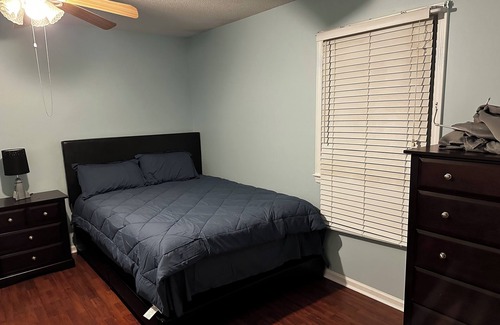Second bedroom, 1 queen bed and twin bed, third bedroom full size bed. Kitchen and dinette seats up to 9, enjoy the formal living room set with sofa and love seat, and entertainment living room with 55 curve Samsun tv, and Apple TV, karaoke speaker and board games. Porch with two love seat and two chairs. A beautiful backyard with above grown Pool available.
