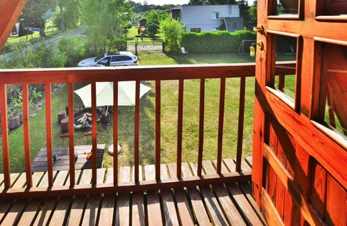 Layout: Ground floor: (Kitchenette(hob(2 ring stoves, electric), electric kettle, toaster, coffee machine, microwave, fridge-freezer), Living/diningroom(20 m2)(double sofa bed, TV(flatscreen, satellite, german television channels), dining table), bedroom(double bed), bathroom(shower, washbasin, toilet)) On the 1st floor: (Gallery bedroom(4x single bed)) Internet access, Lawn, balcony, heating(electric), terrace, garden(shared with other guests, fenced), garden furniture, BBQ(charcoal), parking, play equipment, high chair, baby crib(paid)
