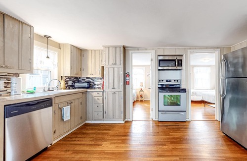 At home, enjoy quiet time on your deck each morning with a cup of coffee, then step inside to make some breakfast when you get hungry. The full, well-equipped kitchen makes meal prep a breeze, and there’s room for the whole gang around the dining table.