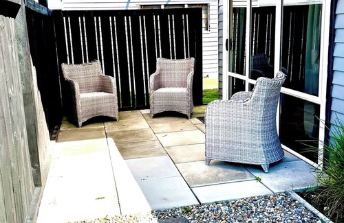 Welcome to your charming lake Gottage — your cozy escape just a short walk from the water and your favorite local shops. With two snug bedrooms and a warm, welcoming lounge area, your comfort is front and center. Whether you're curling up with a book, sharing stories over a cup of coffee, or unwinding after a day by the lake, this is your space to relax and recharge. Step outside to your own little patio, where you can enjoy your morning coffee or an evening drink under the stars. Your peaceful retreat is waiting, and it's all yours.