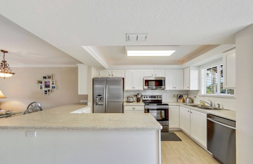 BREATHTAKING, PANORAMIC VIEWS OF INTRACOASTAL…this fully furnished, meticulously decorated condo sits nestled right on the intracoastal and a short walk up the driveway to the Atlantic Ocean. Open the front door and immediately see dramatic views of the intracoastal. The condo has an open floor plan, galley kitchen with state of the art appliances, dining room table, living room with 60 inch LED smart Samsung TV and screened in porch sitting only feet from the intracoastal.